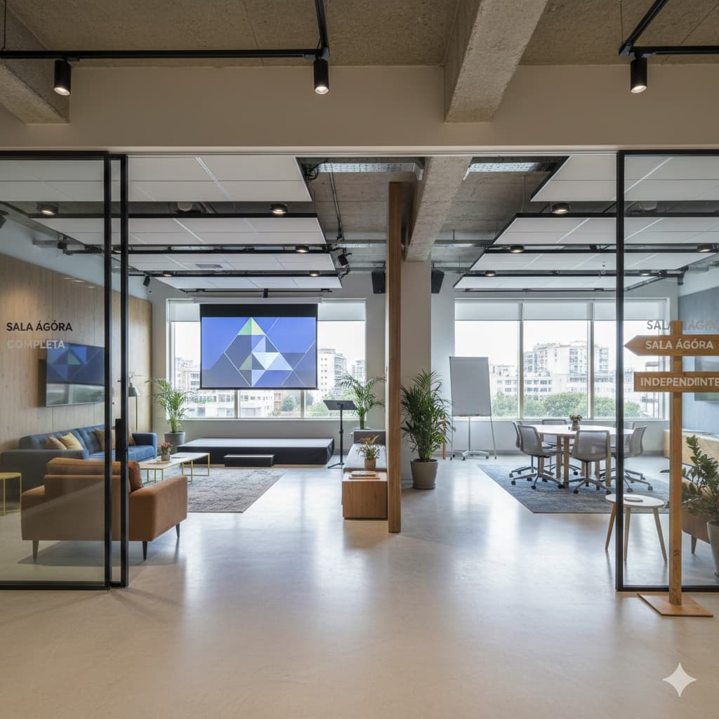 Ágora es el espacio que necesitas: dinámico, flexible y acogedor. Una sala versátil en el corazón Alcobendas diseñada para todo tipo de eventos, celebraciones, reuniones, formaciones o cualquier otra actividad.